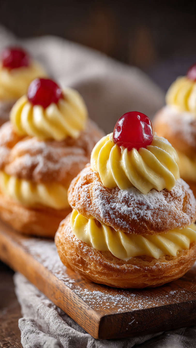 Le Zeppole di San Giuseppe sono uno dei dolci italiani più amati, preparati tradizionalmente il 19 marzo per la Festa del Papà.Soffici, profumate e decorate con crema pasticciera e una ciliegia sciroppata, rappresentano un capolavoro della pasticceria napoletana.Possono essere fritte (versione classica) oppure al forno per una variante più leggera… ma entrambe sono irresistibili! 😍🍒…